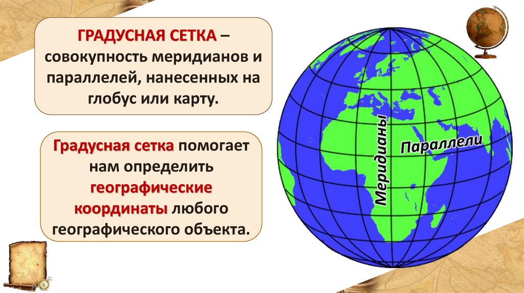 ГРАДУСНАЯ СЕТЬ. ПАРАЛЛЕЛИ ИМЕРИДИАНЫ. ГЕОГРАФИЧЕСКИЕ