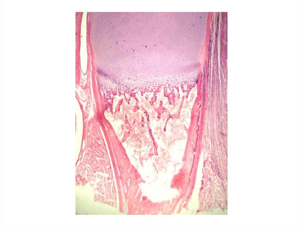 21 + 22 - поздняя стадия развития трубчатой кости (малое+большое увеличение)