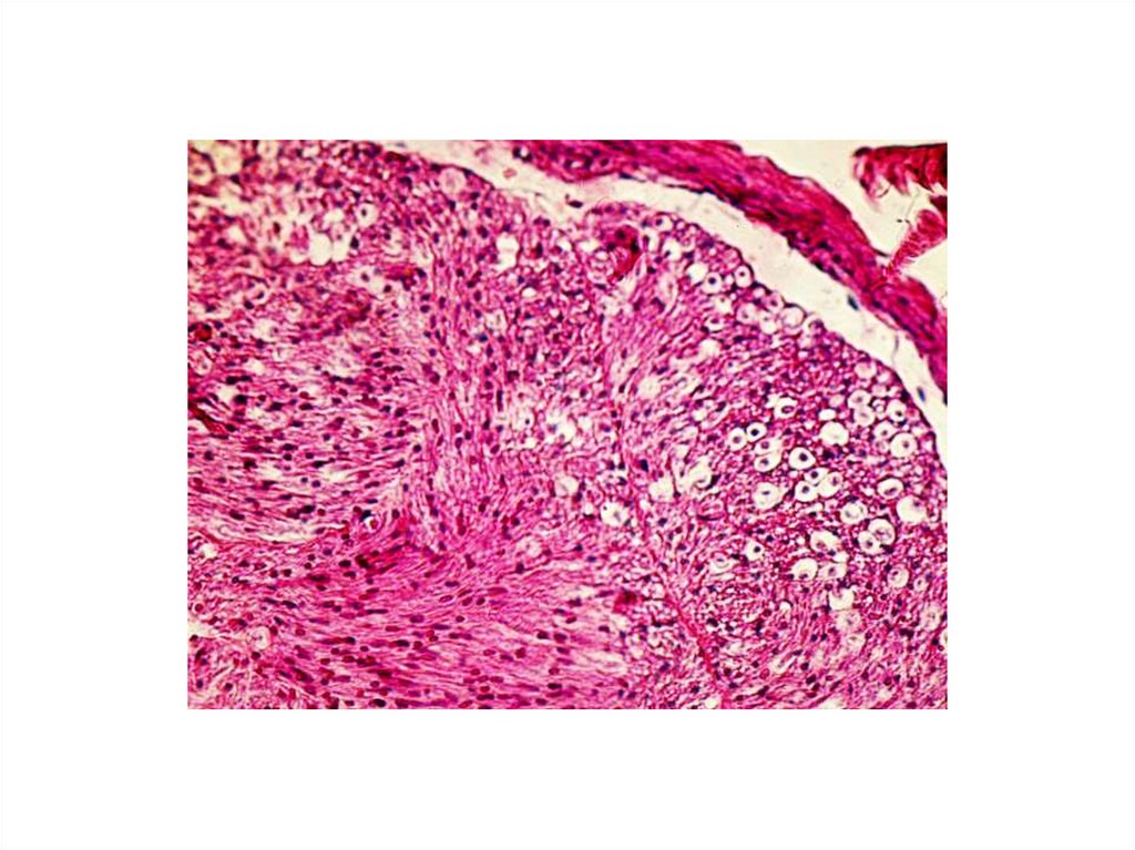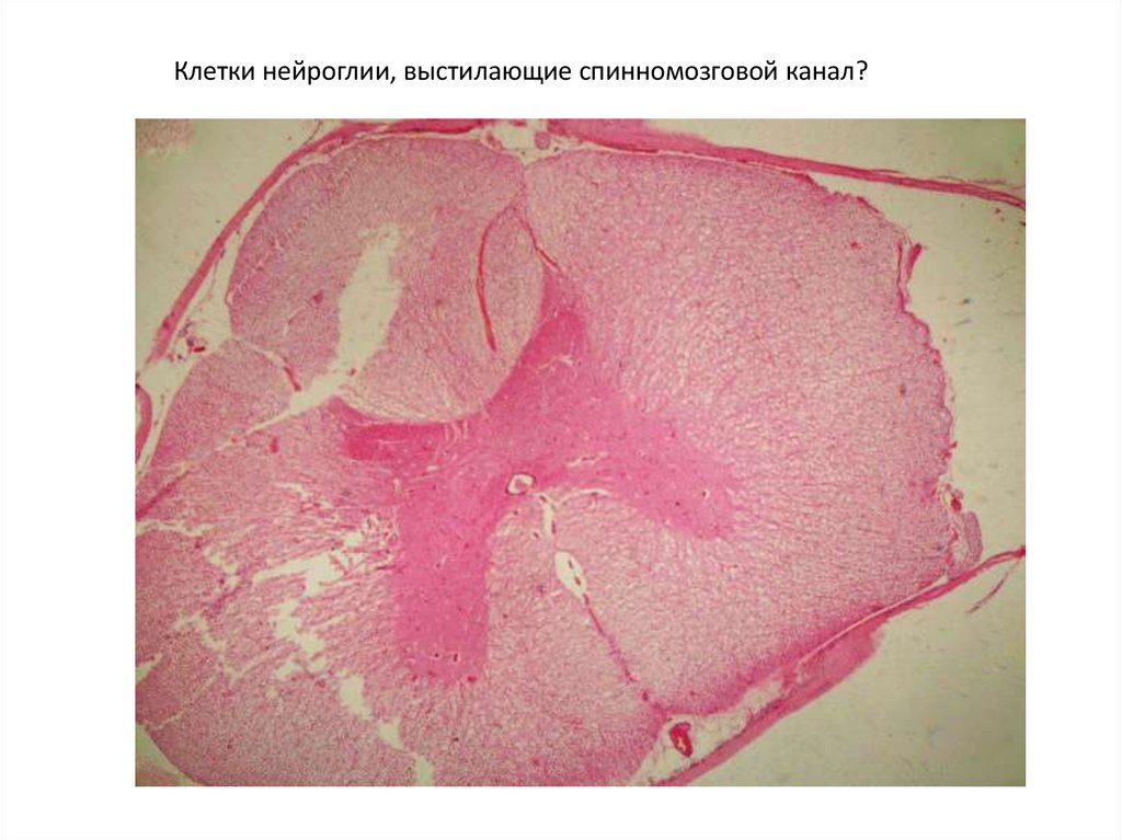 31 - срез спинного мозга (выстлан спинномозговой канал эпендимоцитами, астроциты плазматические, а вокруг