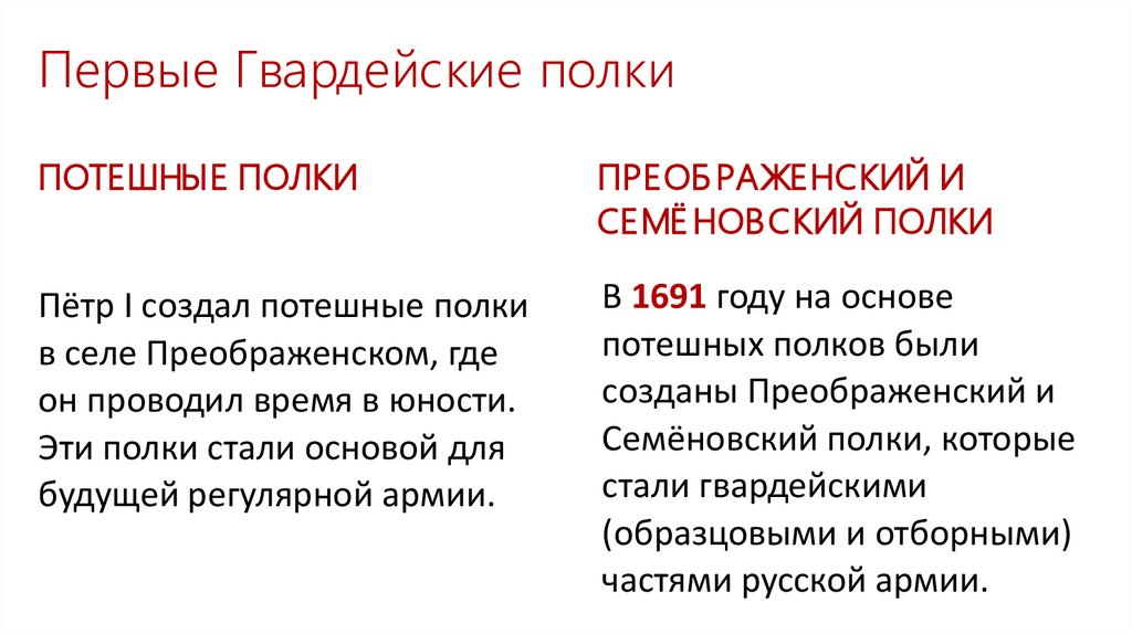 Первые Гвардейские полкиПОТЕШНЫЕ ПОЛКИ