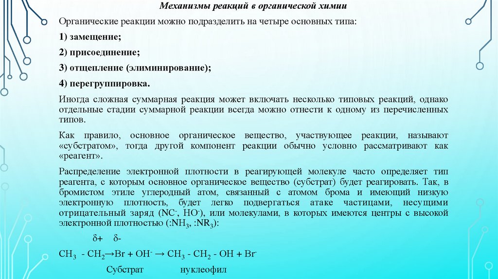 Механизмы реакций в органической химииОрганические реакции можно подразделить на четыре основных типа: