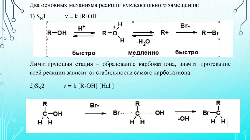 Два основных механизма реакции нуклеофильного замещения:1) SN1