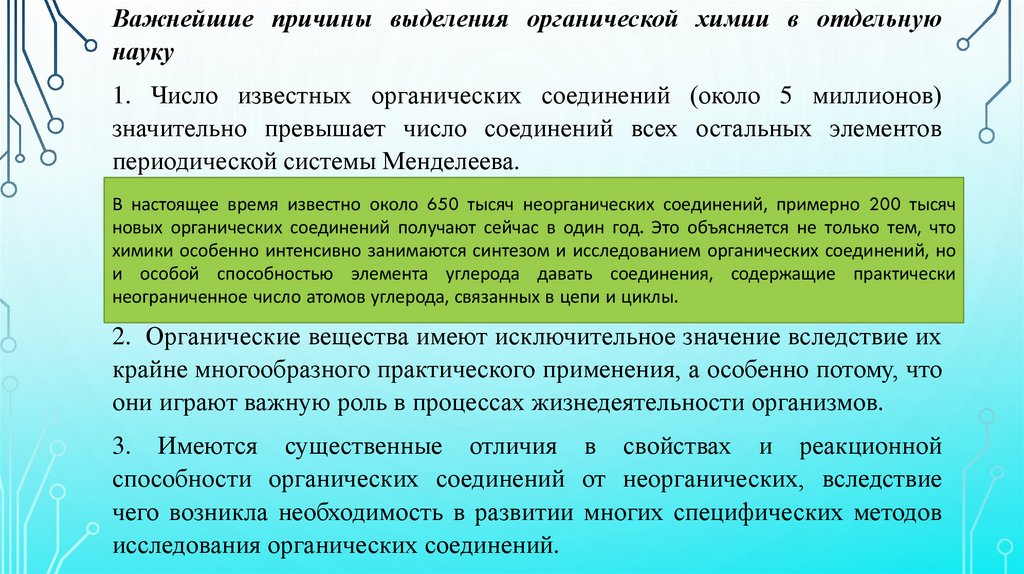 Важнейшие причины выделения органической химии в отдельнуюнауку
