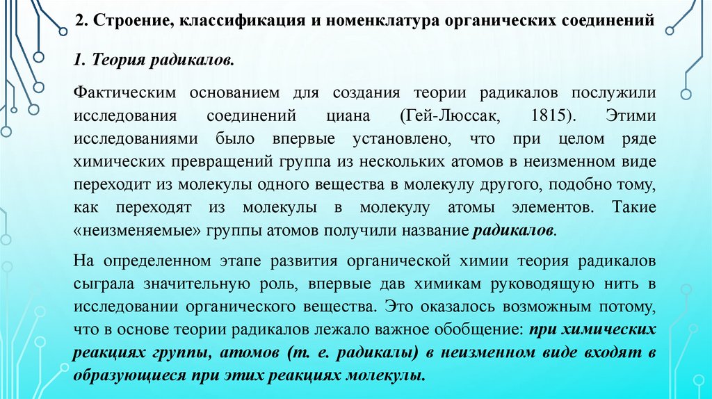 2. Строение, классификация и номенклатура органических соединений1. Теория радикалов.