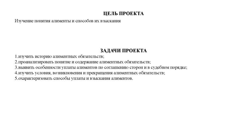 ЦЕЛЬ ПРОЕКТАИзучение понятия алименты и способов их взыскания