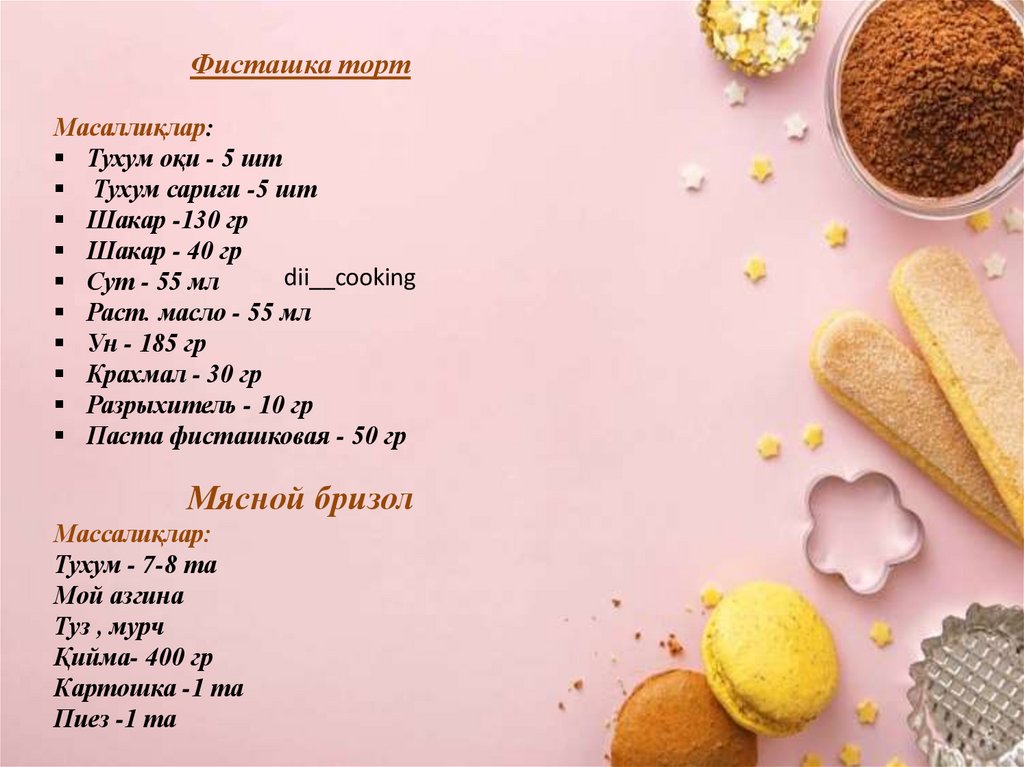 Фисташка тортМасаллиқлар: