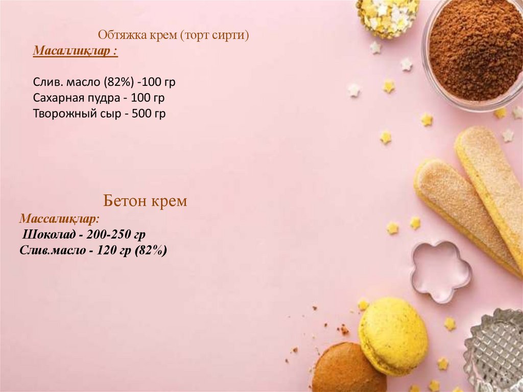 Обтяжка крем (торт сирти)Масаллиқлар :