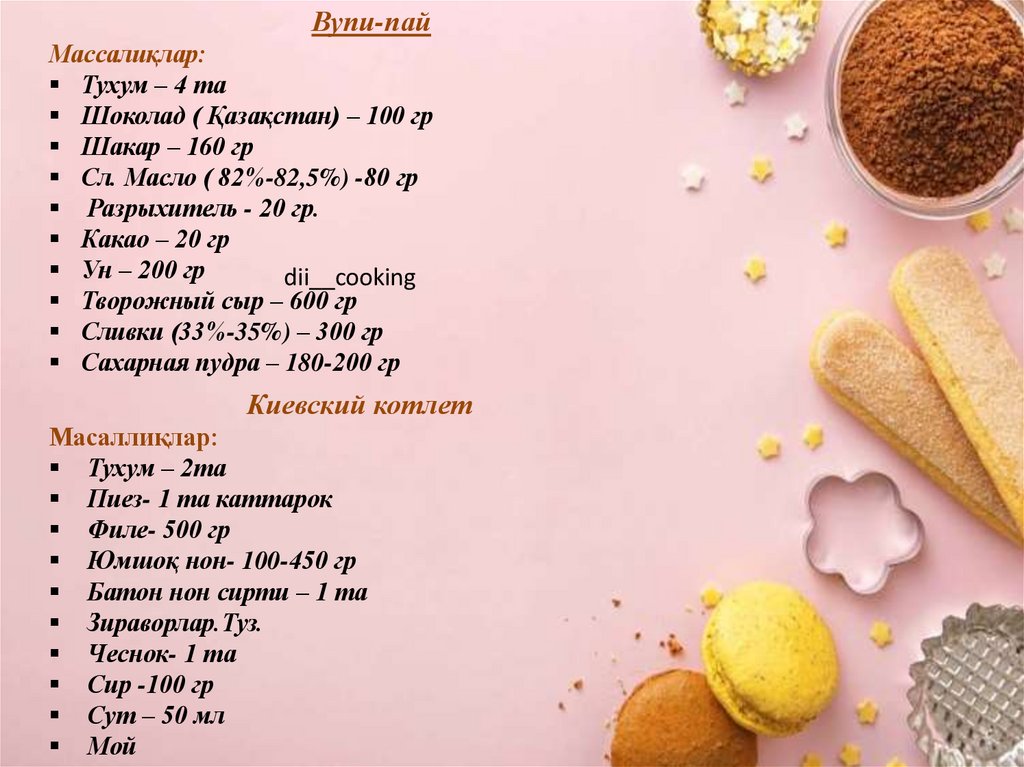 Вупи-пайМассалиқлар: