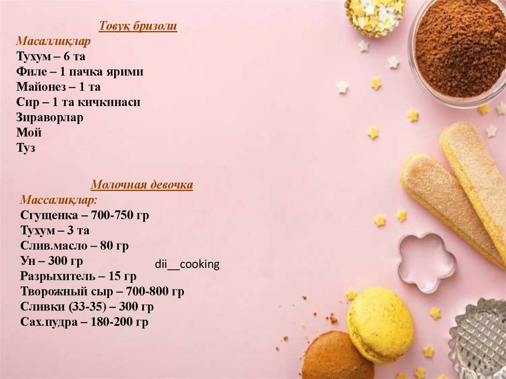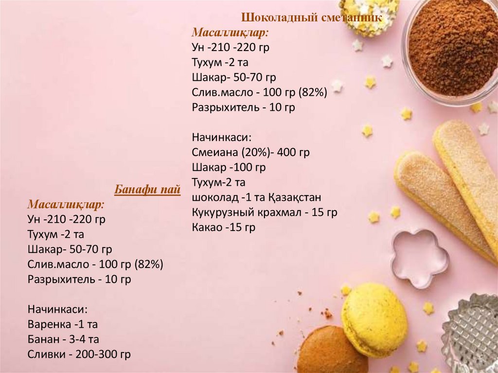 Шоколадный сметанникМасаллиқлар: