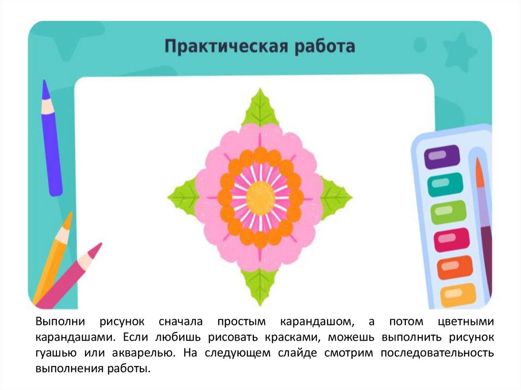 гуашью или акварелью. На следующем слайде смотрим последовательность