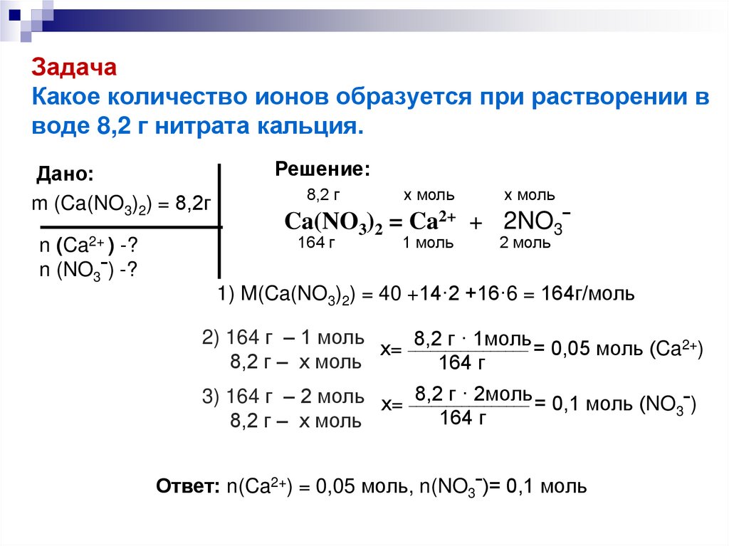 8,2 г · 1моль = 0,05 моль (Ca2+)