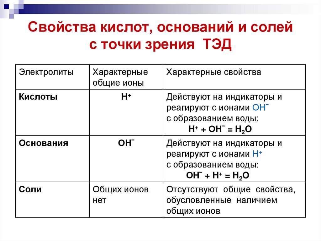 Свойства кислот, оснований и солейс точки зрения ТЭД
