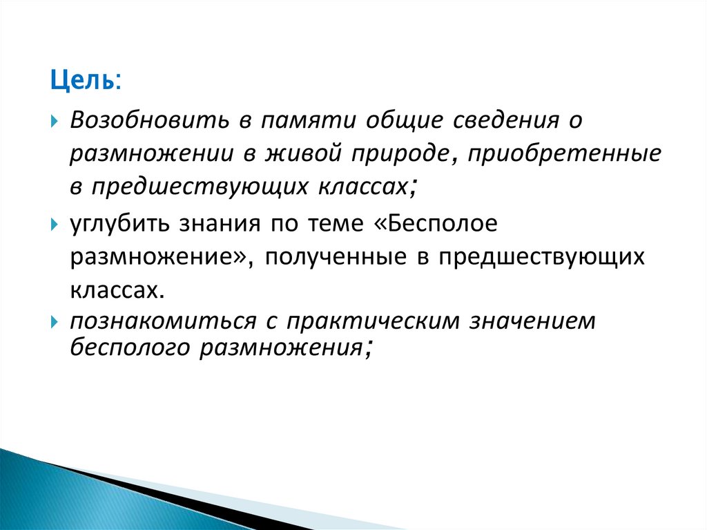 углубить знания по теме «Бесполое