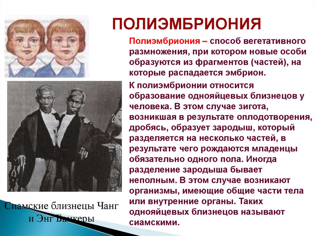 ПОЛИЭМБРИОНИЯСиамские близнецы Чанг