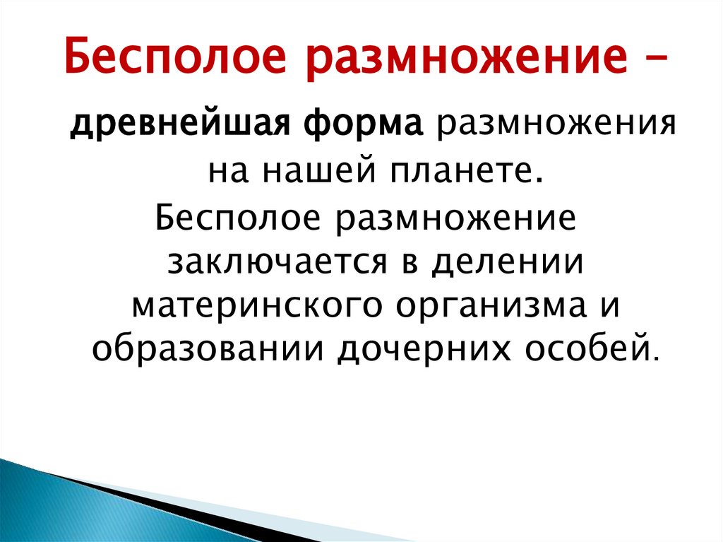 Бесполое размножение –древнейшая форма размножения