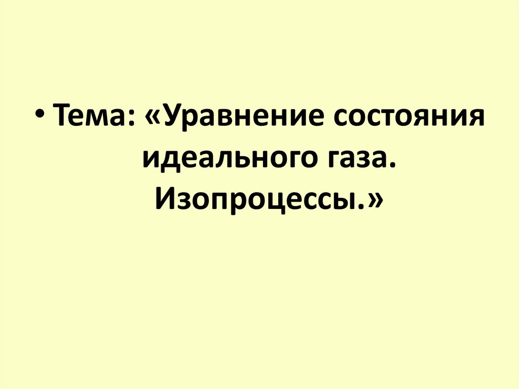 • Тема: «Уравнение состоянияидеального газа.