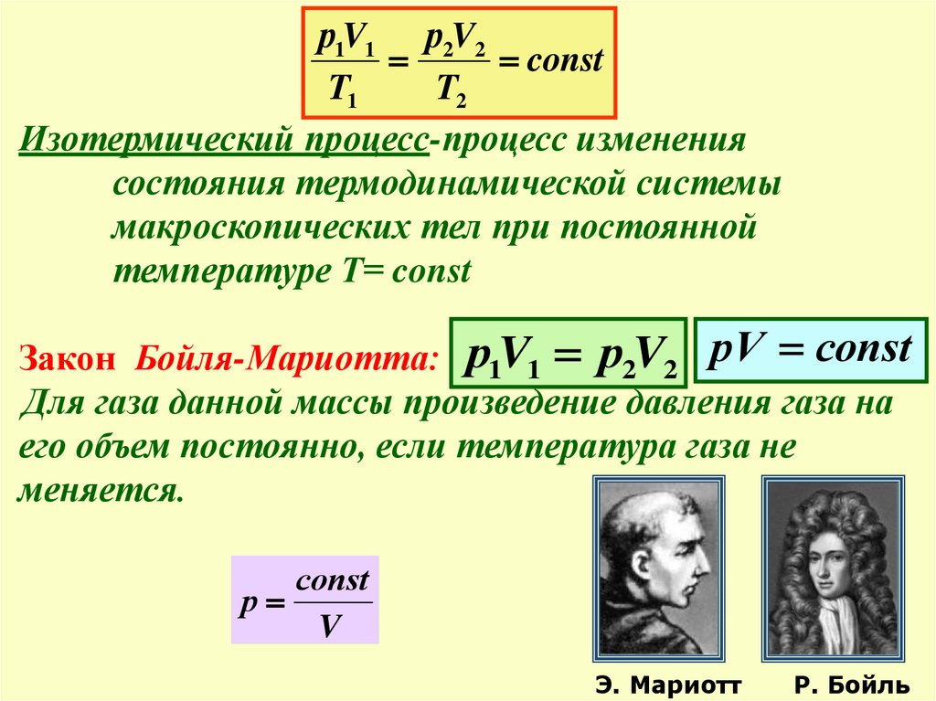 Закон Бойля-Мариотта: р1V1 р2V2 рV соnst