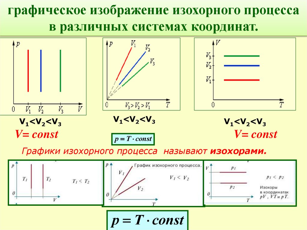 Графики изохорного процесса называют изохорами.