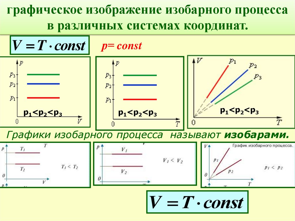 Графики изобарного процесса называют изобарами.