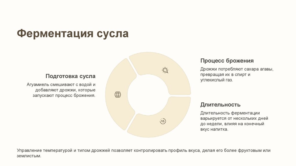Управление температурой и типом дрожжей позволяет контролировать профиль вкуса, делая его более фруктовым или