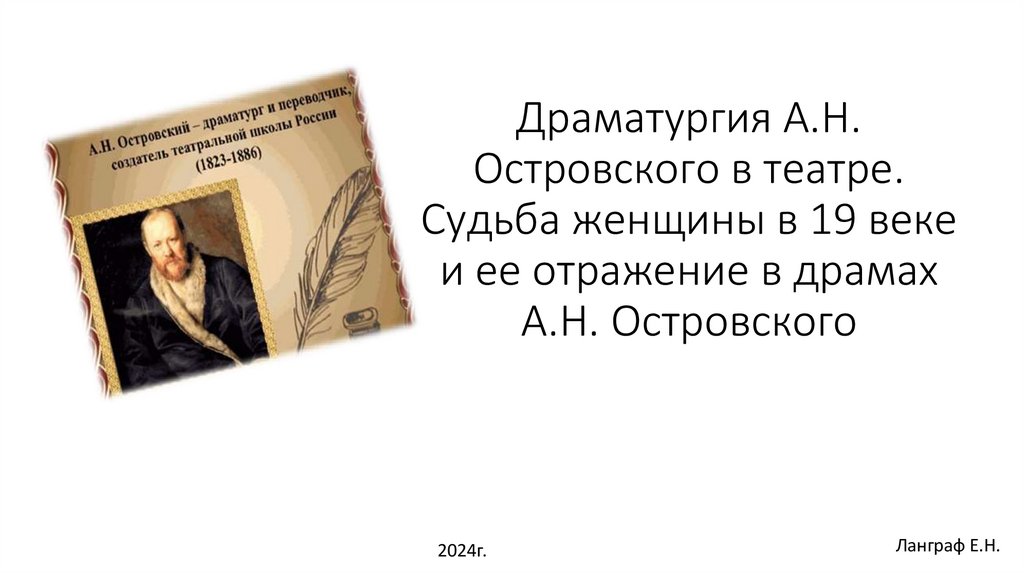 1. Драматургия А.Н. Островского в театре. Судьба женщины в 19 веке и ее отражение в драмах А.Н. Островского