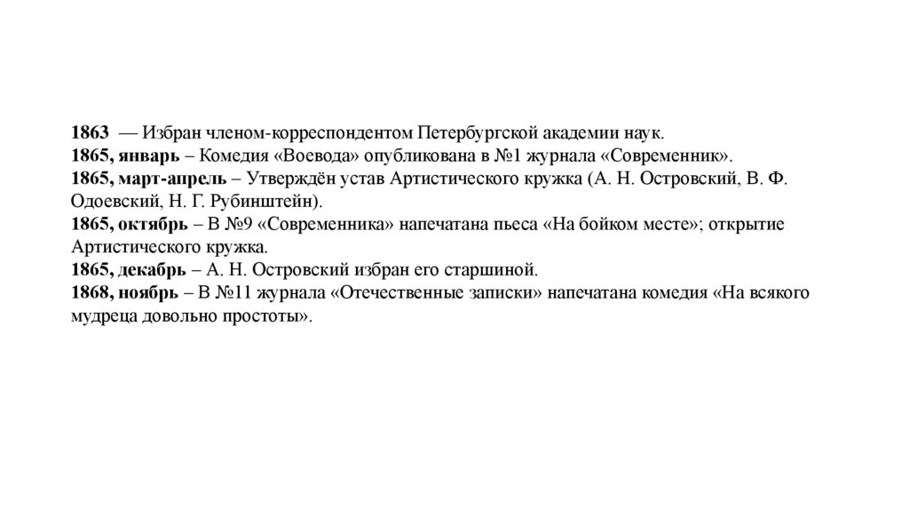дело. Островский основал Артистический кружок в 1866 году, благодаря