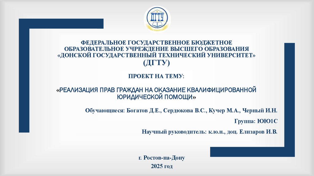 1. ФЕДЕРАЛЬНОЕ ГОСУДАРСТВЕННОЕ БЮДЖЕТНОЕ ОБРАЗОВАТЕЛЬНОЕ УЧРЕЖДЕНИЕ ВЫСШЕГО ОБРАЗОВАНИЯ «ДОНСКОЙ ГОСУДАРСТВЕННЫЙ ТЕХНИЧЕСКИЙ