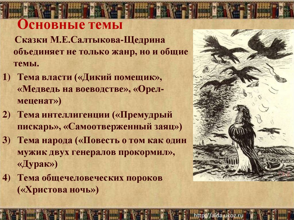 Основные темыСказки М.Е.Салтыкова-Щедрина