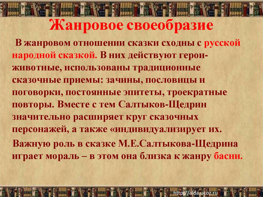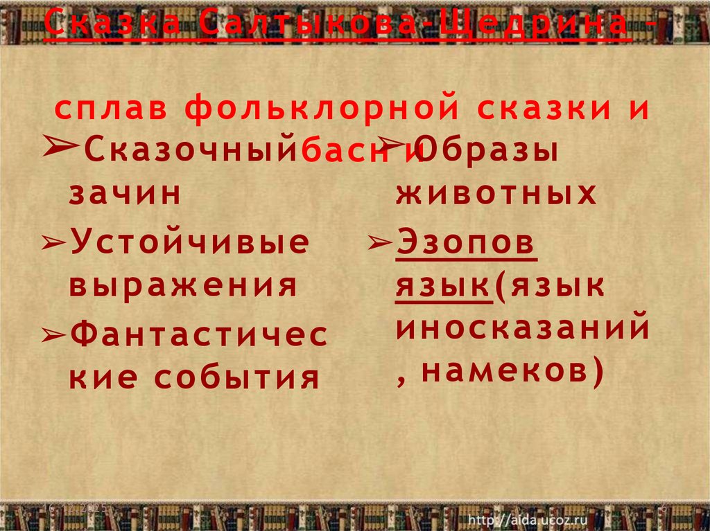 Сказка Салтыкова-Щедрина –сплав фольклорной сказки и