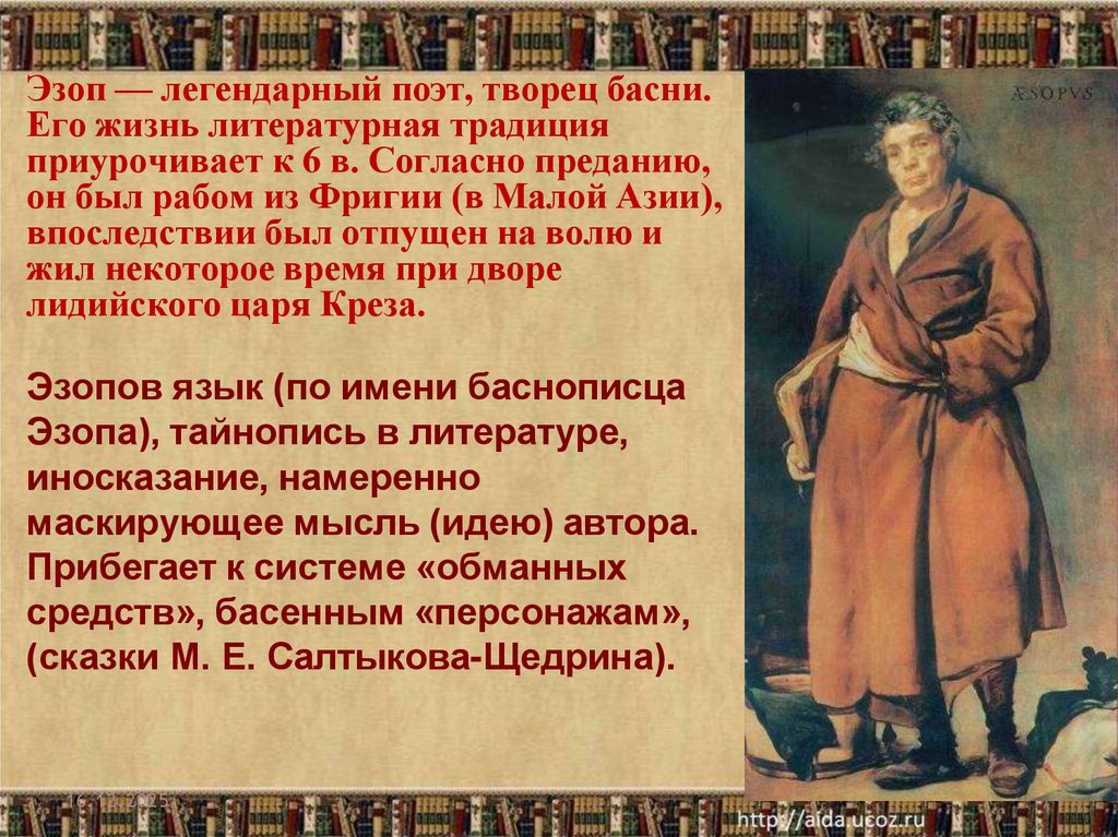 Эзоп — легендарный поэт, творец басни.Его жизнь литературная традиция