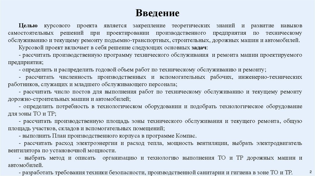 - рассчитать производственную площадь зоны технического обслуживания и текущего ремонта, общую