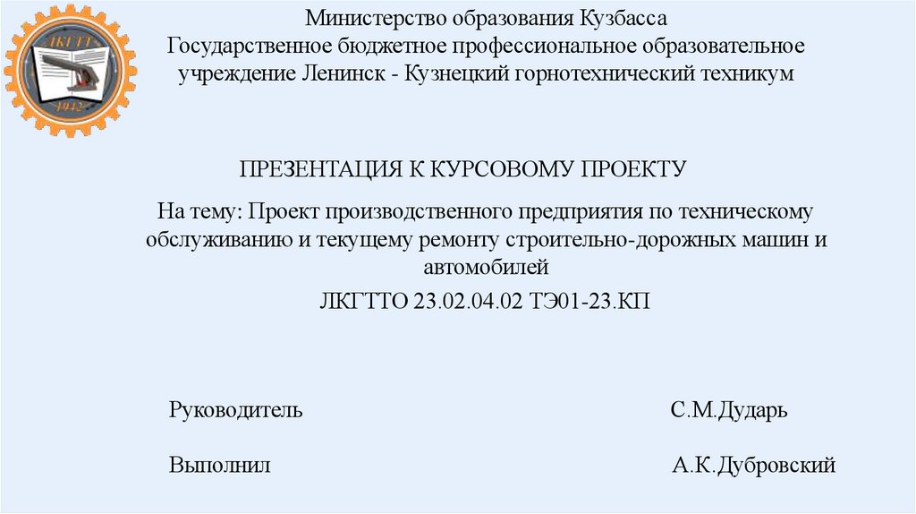 ПРЕЗЕНТАЦИЯ К КУРСОВОМУ ПРОЕКТУ