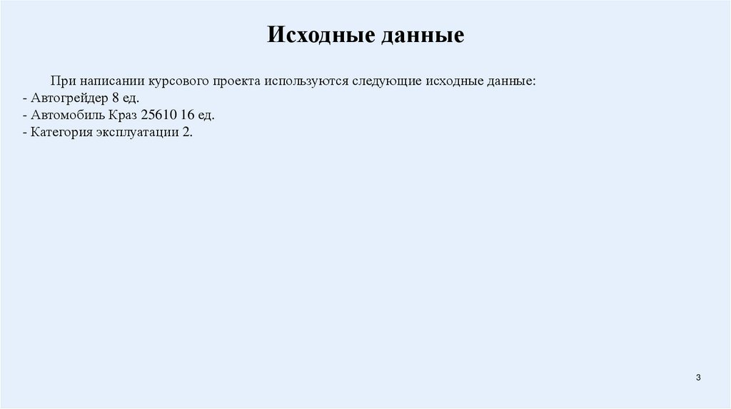 Исходные данныеПри написании курсового проекта используются следующие исходные данные: