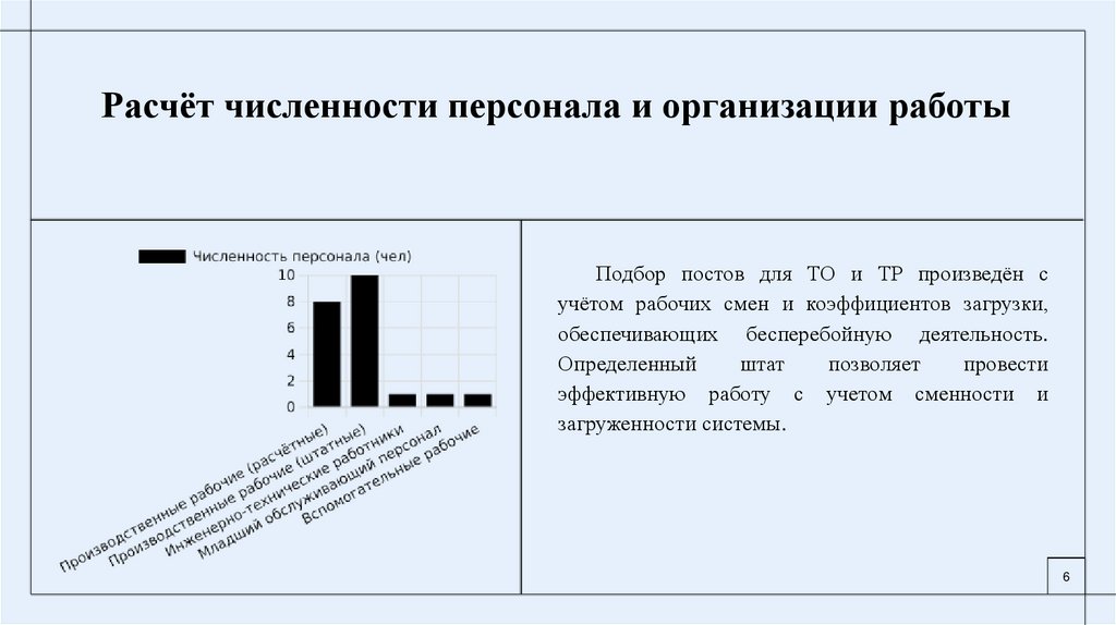 Расчёт численности персонала и организации работыПодбор постов для ТО и ТР произведён с