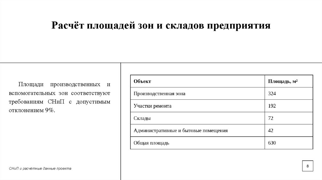 Расчёт площадей зон и складов предприятияПлощади производственных и