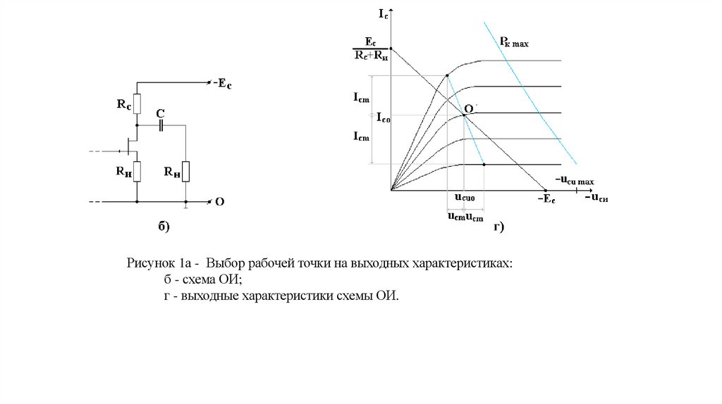 Рисунок 1а - Выбор рабочей точки на выходных характеристиках:б - схема ОИ;