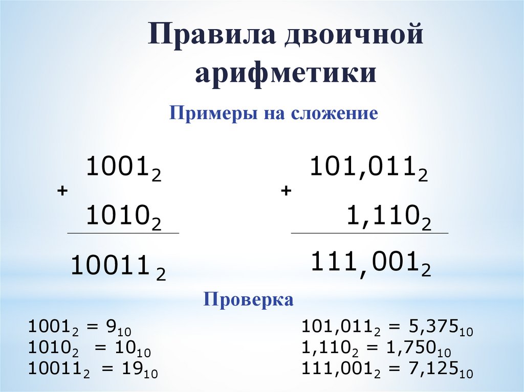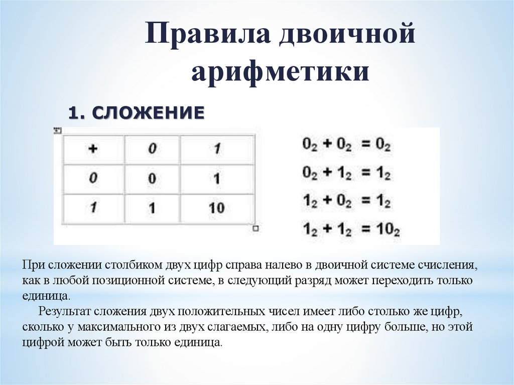 При сложении столбиком двух цифр справа налево в двоичной системе счисления,