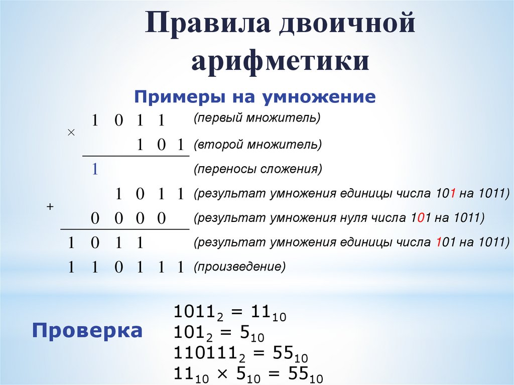 Таким образом, реальным результатом умножения двух исходных двоичных чисел является: