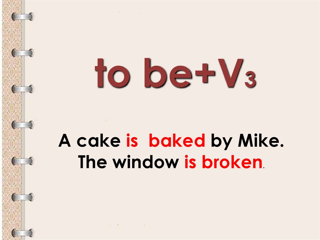 to be+V3A cake is baked by Mike.