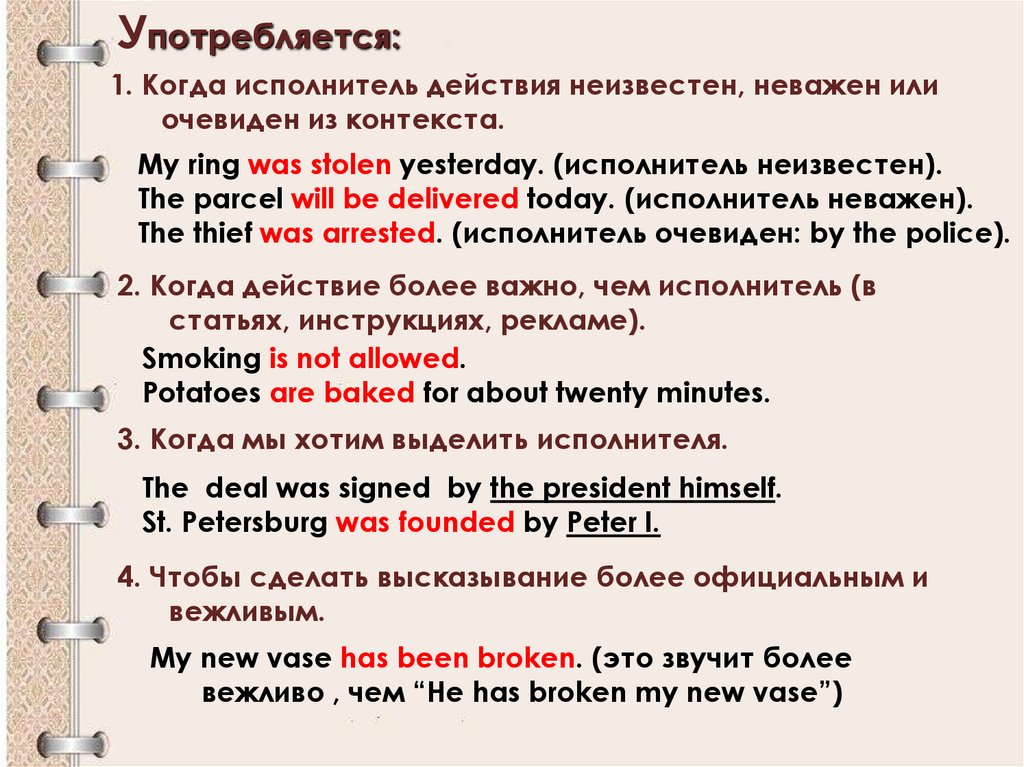 Употребляется:1. Когда исполнитель действия неизвестен, неважен или