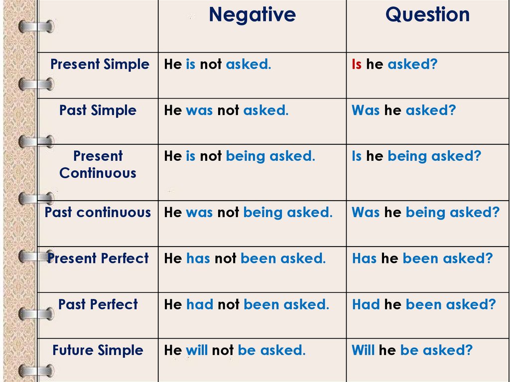 Present Simple He is not asked.