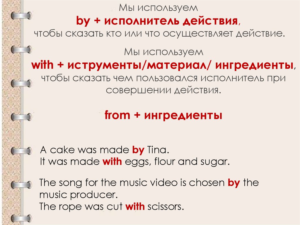 Мы используемby + исполнитель действия,