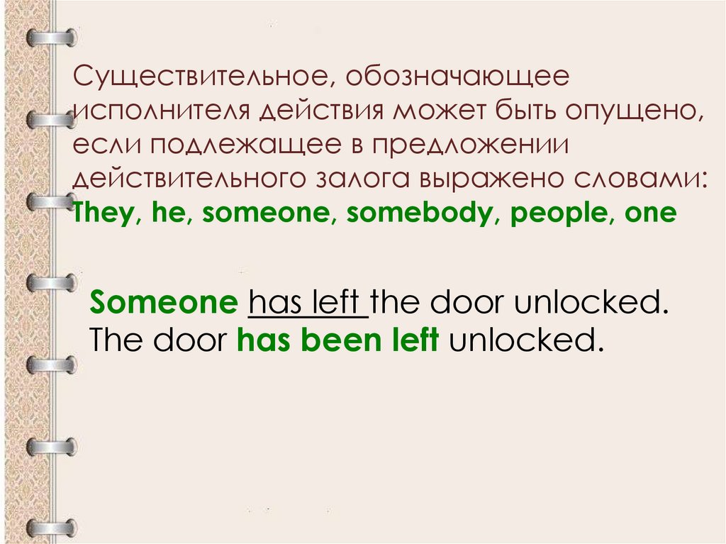 страдательного залога, где роль подлежащего
