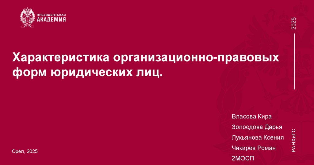 закреплённая форма организации фирмы, а также совокупность прав и обязанностей