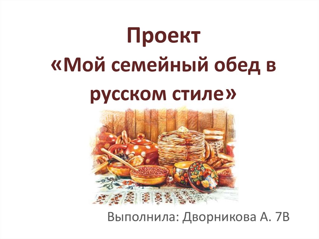 • Поставленная цель на проект «Мой семейныйобед в русском стиле» выполнена: блюда
