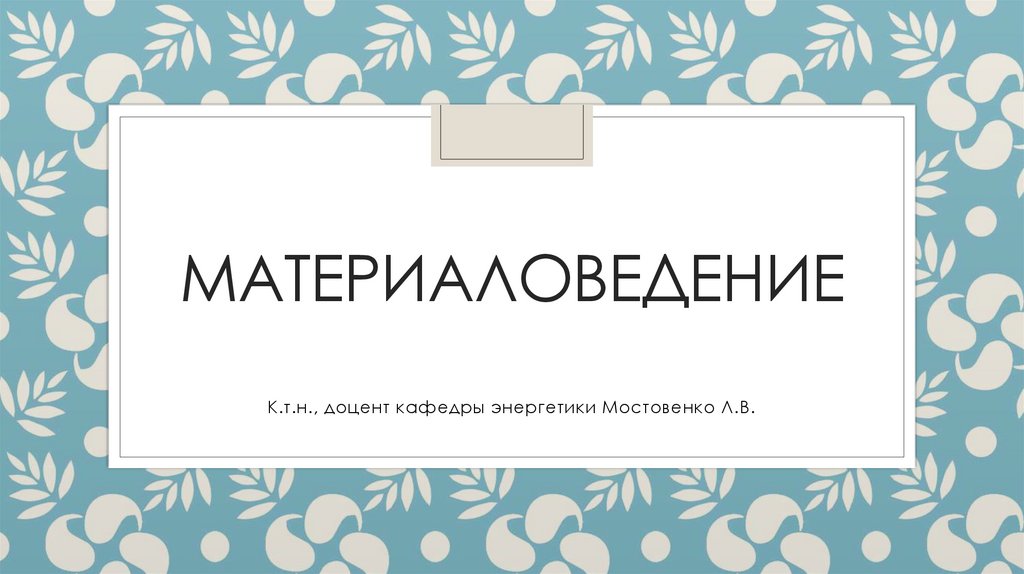 МАТЕРИАЛОВЕДЕНИЕК.т.н., доцент кафедры энергетики Мостовенко Л.В.