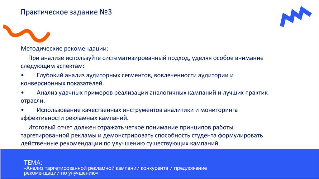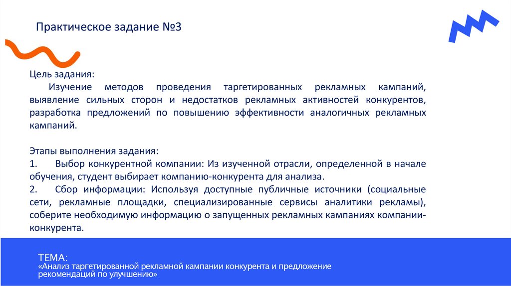 таргетированной рекламы и демонстрировать способность студента формулировать