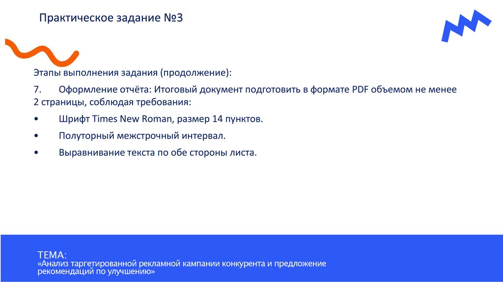Оформление отчёта: Итоговый документ подготовить в формате PDF объемом не менее