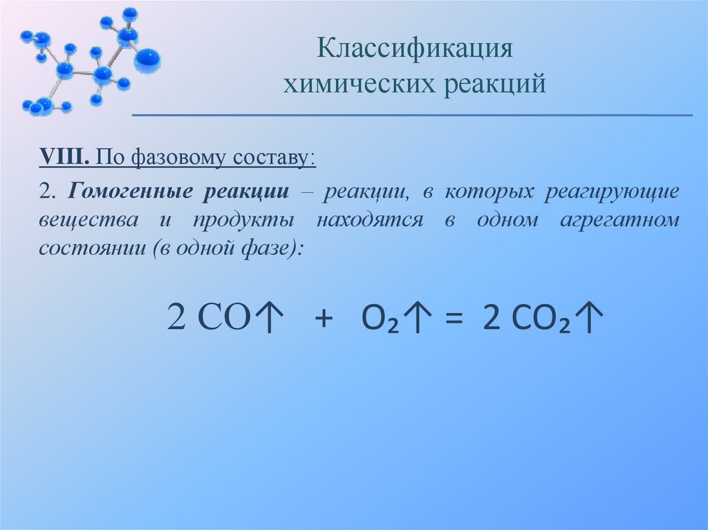 2. Гомогенные реакции – реакции, в которых реагирующие