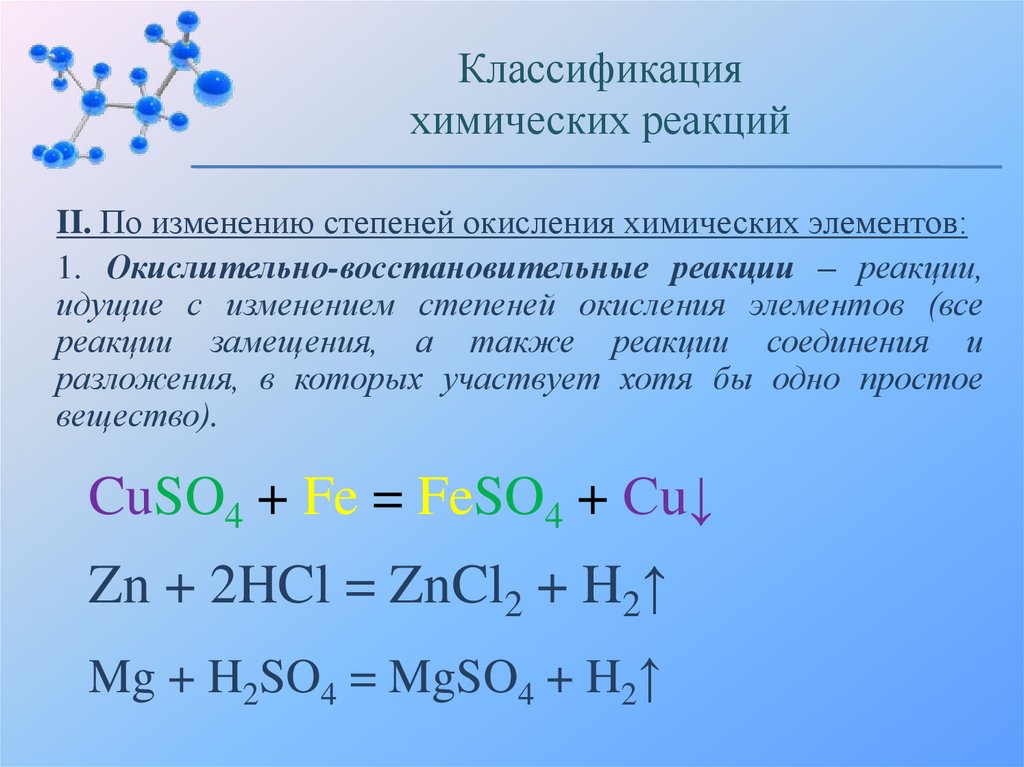 Химические реакции это процессы, в результате которых из одних веществобразуются другие, отличающиеся от них по составу
